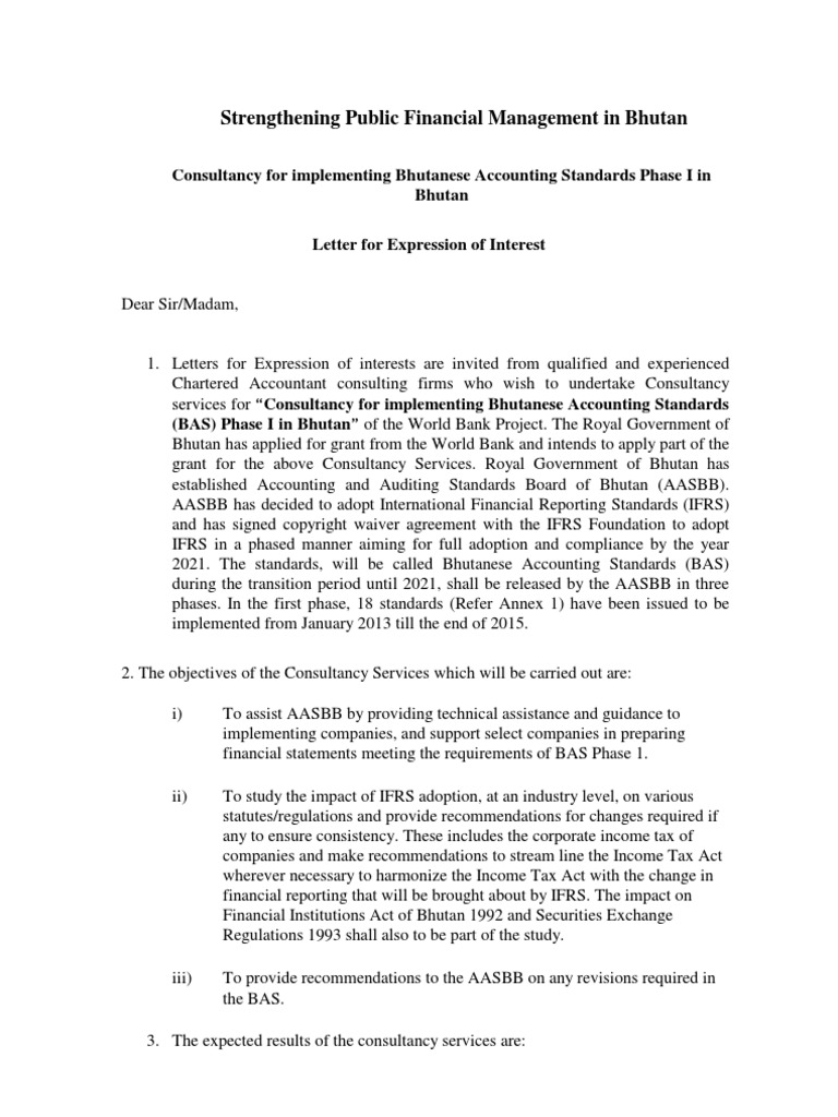 Letter Of Expression Of Interest International Financial Reporting Standards Financial Statement